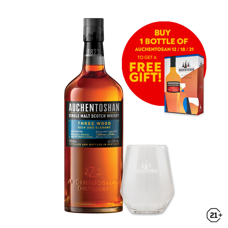 This award-winning Auchentoshan Single Malt Scotch Whisky has been matured in three different cask types. From American Bourbon to Spanish Oloroso Sherry – and then, finally, Pedro Ximenez Sherry casks – this a rich, complex whisky with toffee and sherry flavours. Three Wood makes a cracking Auchentoshan & Ale, a mean Old Fashioned and a damn fine dram in its own right.