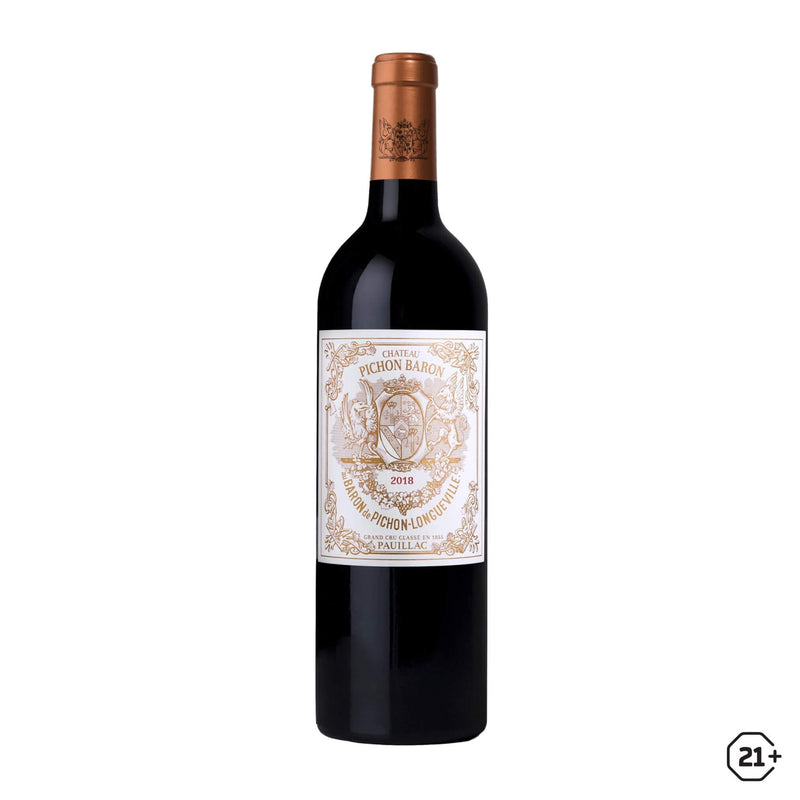 Château Pichon Baron 2018 reveals a dark garnet colour. The precise and delicate nose offers notes of fresh fruit, black berries and spices. The attack is mellow, generous, rounded and juicy, developing powerful, well-blended tannins. The body is structured with silky, racy tannins. The flavour is carried by the structure, which preserves the mid-palate. The finish is tasty, full, fleshy, and harmonious.