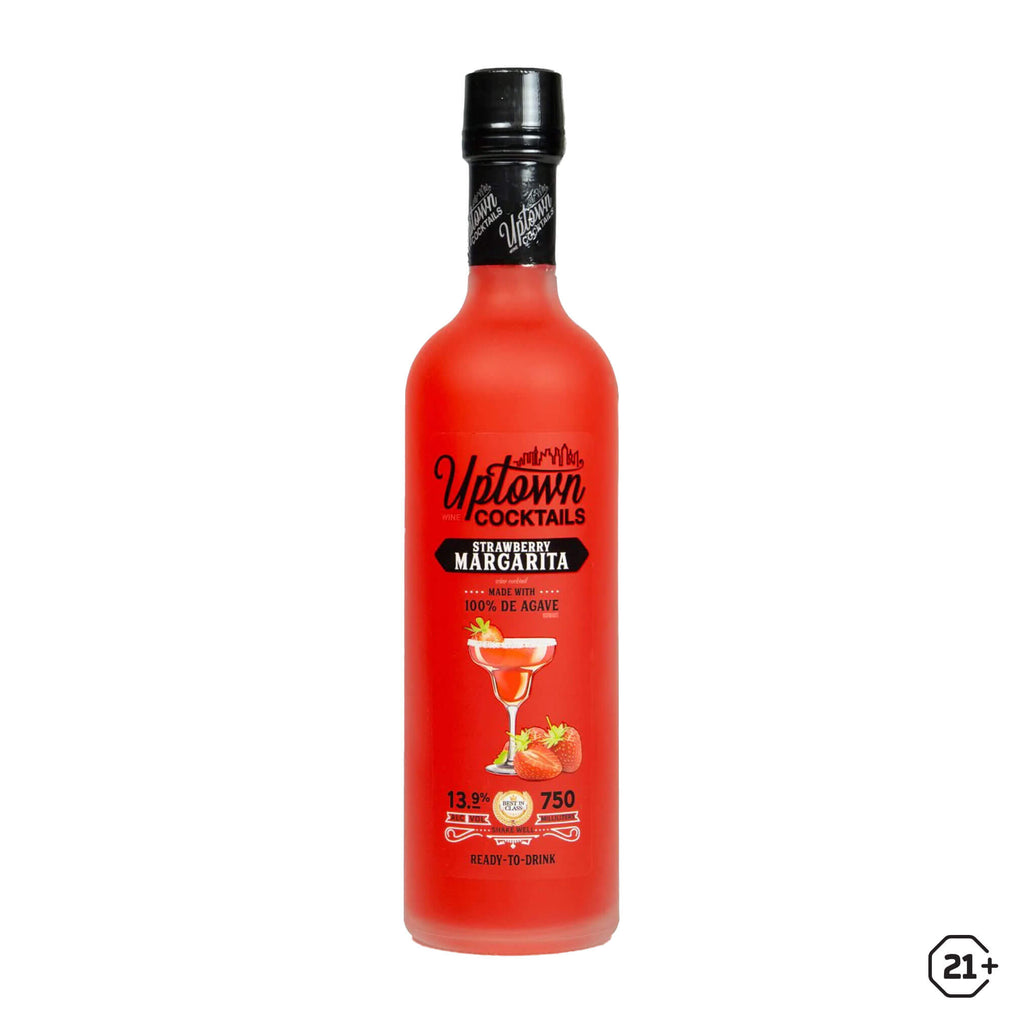 Uptown Cocktails Strawberry Margarita is a perfect swirl of sweet strawberries, lime, and agave wine.