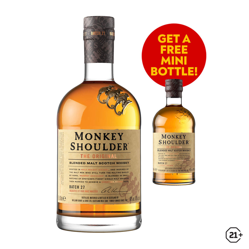 Monkey Shoulder is a mix of three different Speyside single malts and is great with mixers or just on its own. Smooth, sweet and very easy to drink.